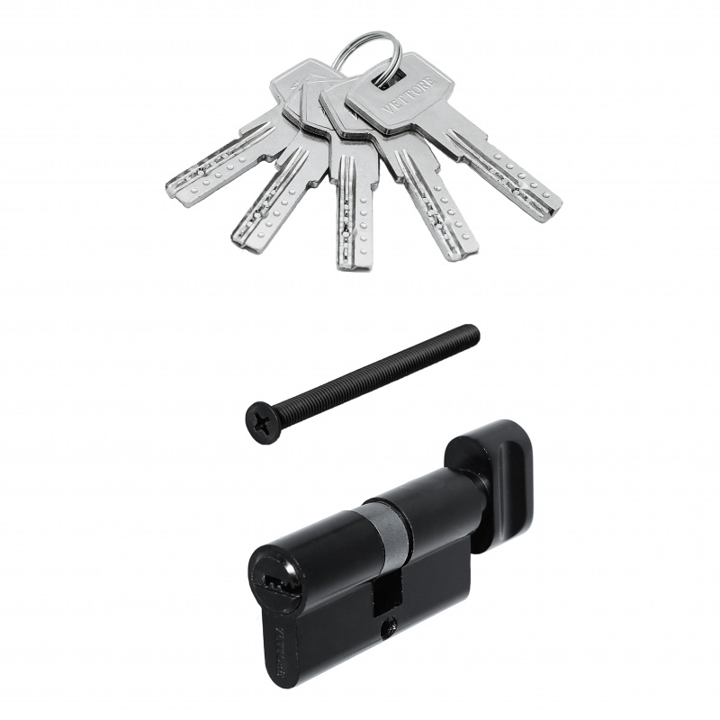Дверной цилиндровый механизм / личинка / цилиндр для металлических и деревянных внутренних и внешних дверей VETTORE ZN M60 ZC MBP (30T*30) Чёрный матовый, ключ - завертка обеспечит защиту общественных и жилых помещений, комнат, ванной и санузла. Может быть установлен совместно с врезными замками, сантехническими магнитными и кевларовыми механизмами.