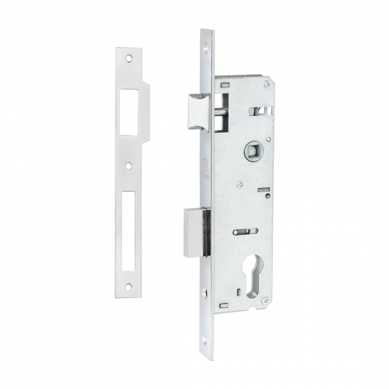 Отличительным признаком данной серии замков является межосевое расстояние 92 мм, которое является одним из стандартных в ПВХ дверях. Ответные планки входят в комплект. Декоративные накладки на цилиндровый механизм в комплект не входят.